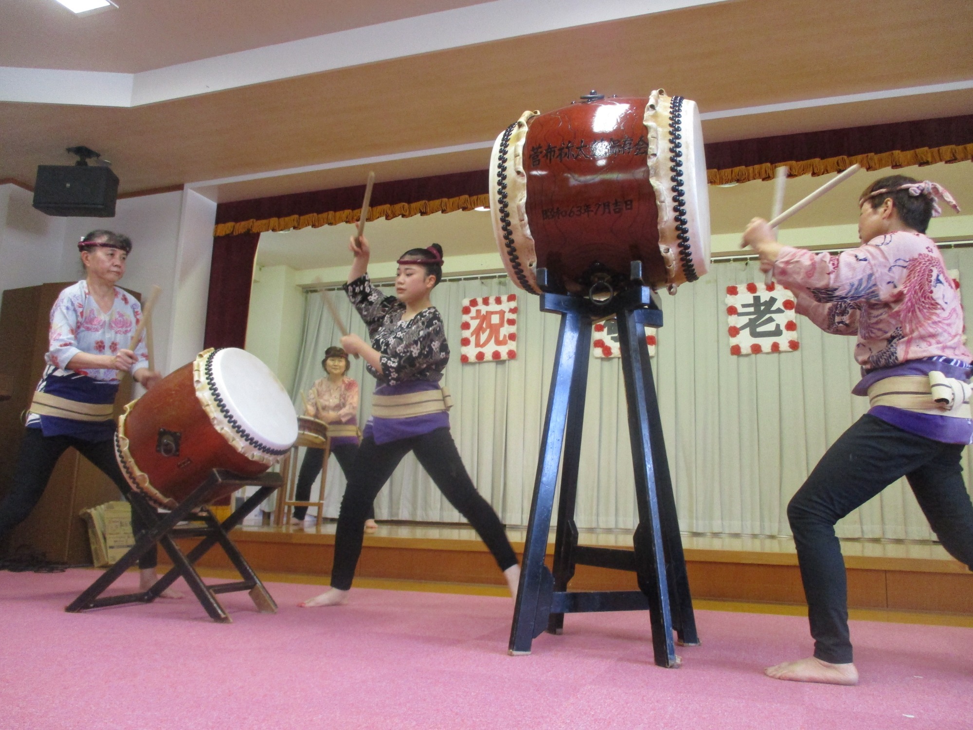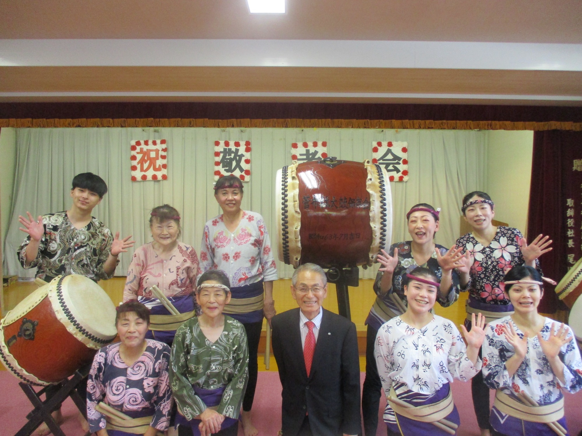 デイサービスでは敬老会が2日間にわたり開かれ「平田村菅船太鼓保存会」のみなさんがお祝いの太鼓を披露してくださいました~♬♪ ものすごい迫力の演奏が利用者のみなさんの心に響きわたりました😊
