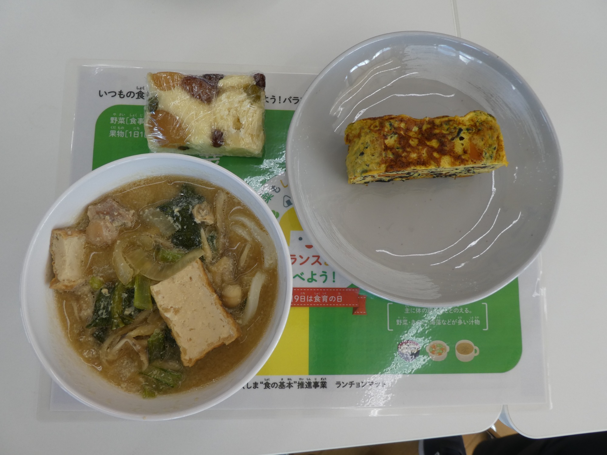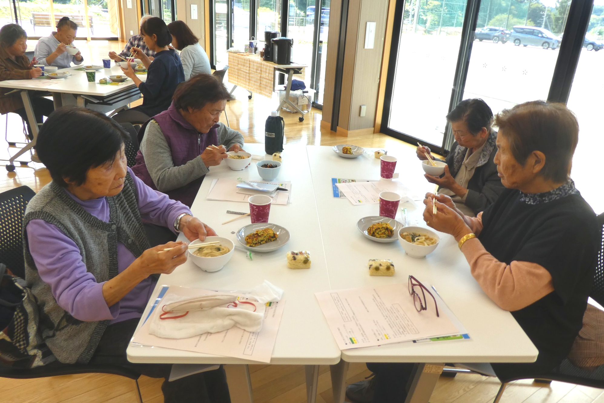栄養士さんによる栄養講話の後は、食改さんが作ってくれた栄養満点の食事を試食😊今回のメニューは、鶏だし野菜うどん・ひじき入り五目玉子焼き・とうふ蒸しパンでした。みんなで学んで、食べて、元気になれる栄養教室でした。参加者同士のおしゃべりも大事ですね♪