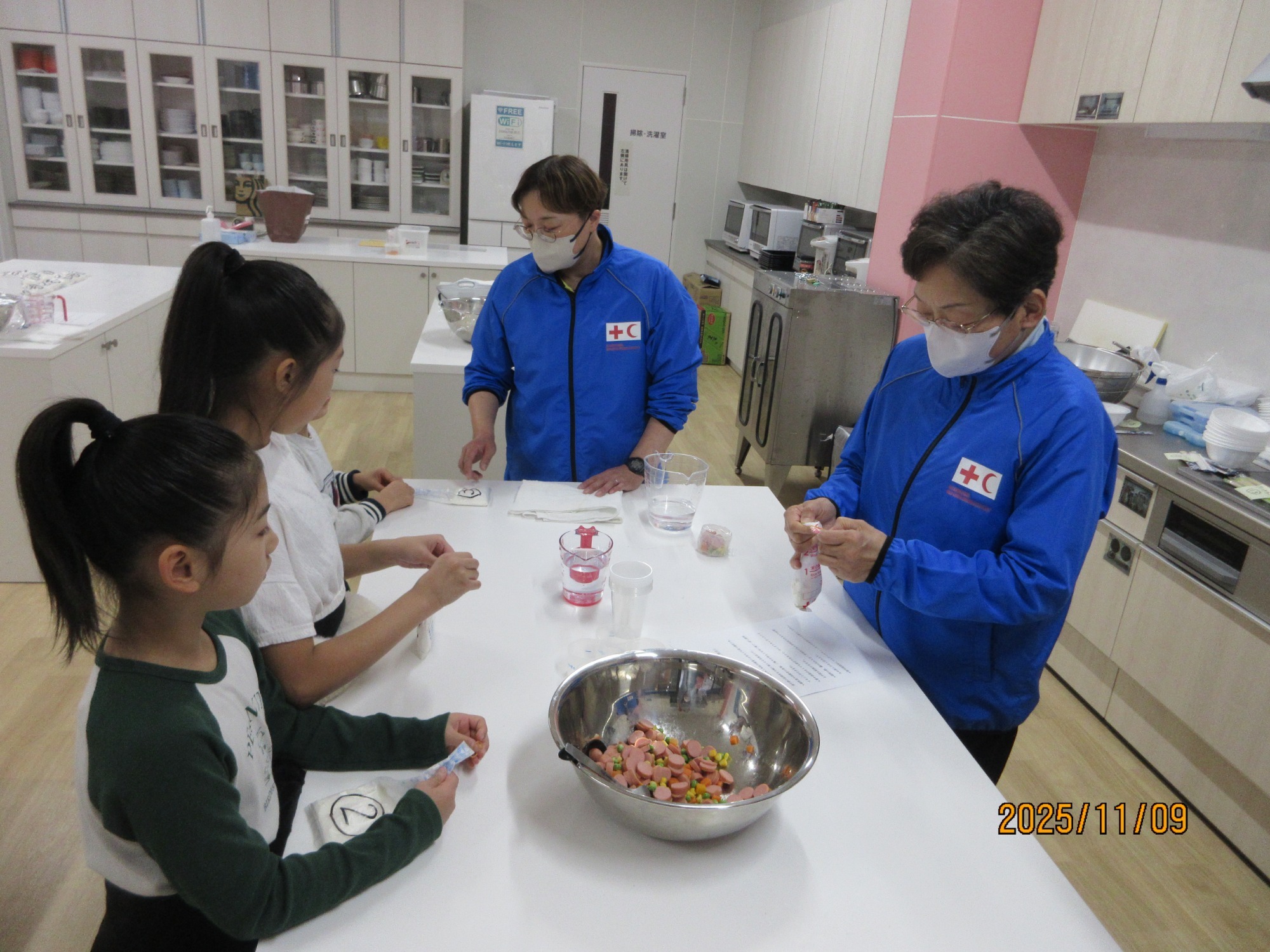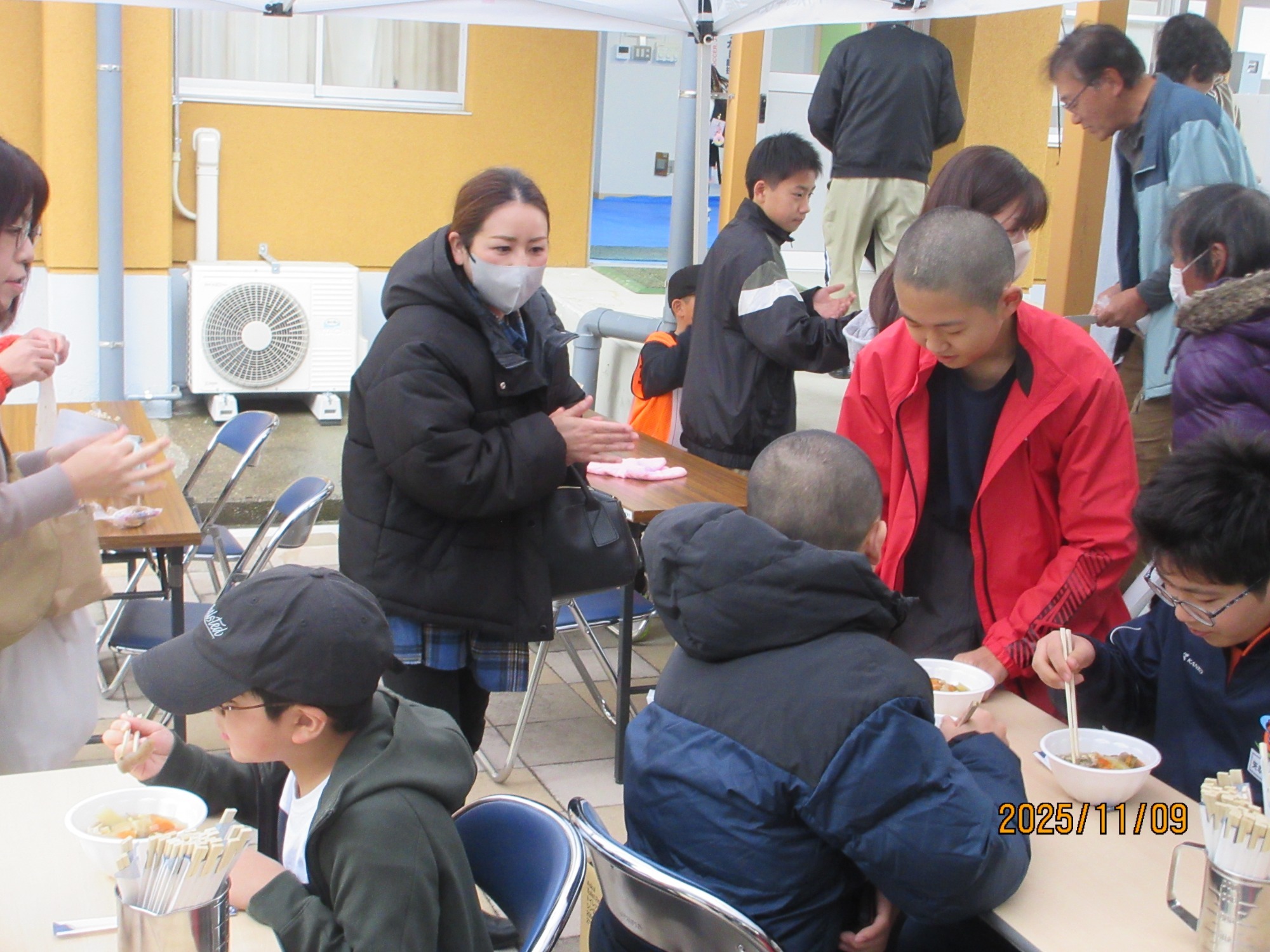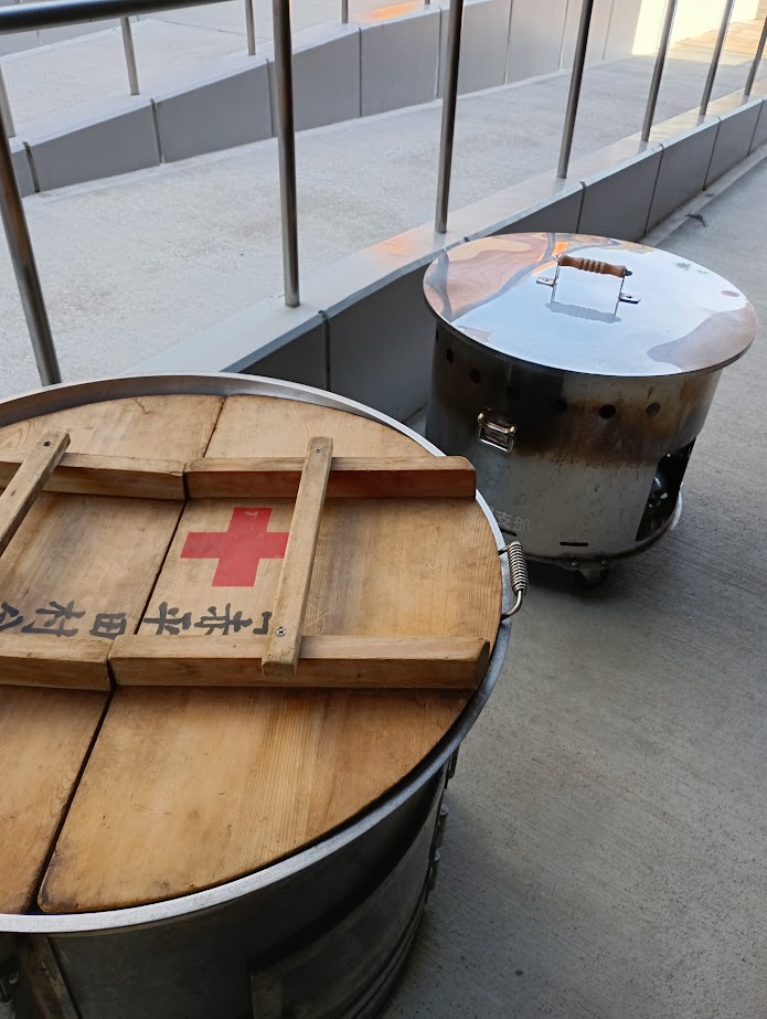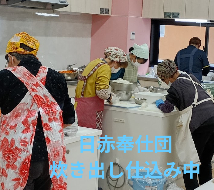 日赤奉仕団のブースでは炊き出し体験(豚汁・蒸しパン)を行っています。がんばろう会のパンの販売、キッチンカーでのうどんの販売、無料でコーヒーやお茶等の提供もあります!お待ちしてま~す😊