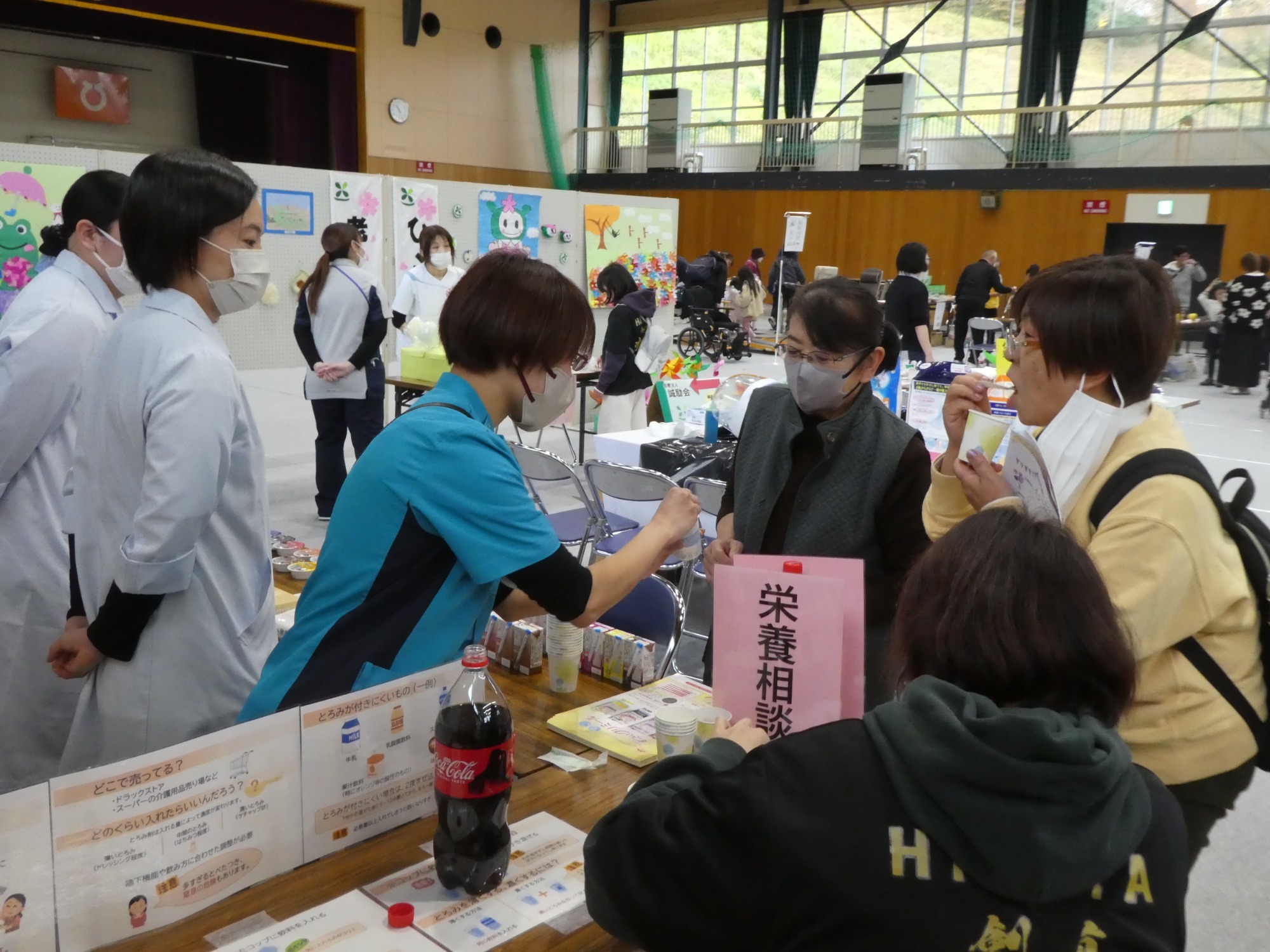 栄養相談・健康相談、福祉用具の展示・相談コーナーや日赤奉仕団の炊き出し体験・VR体験・高齢者疑似体験など体験コーナー、展示コーナーが設けられ来場されたみなさん、おもいおもいに楽しまれていました(^^♪