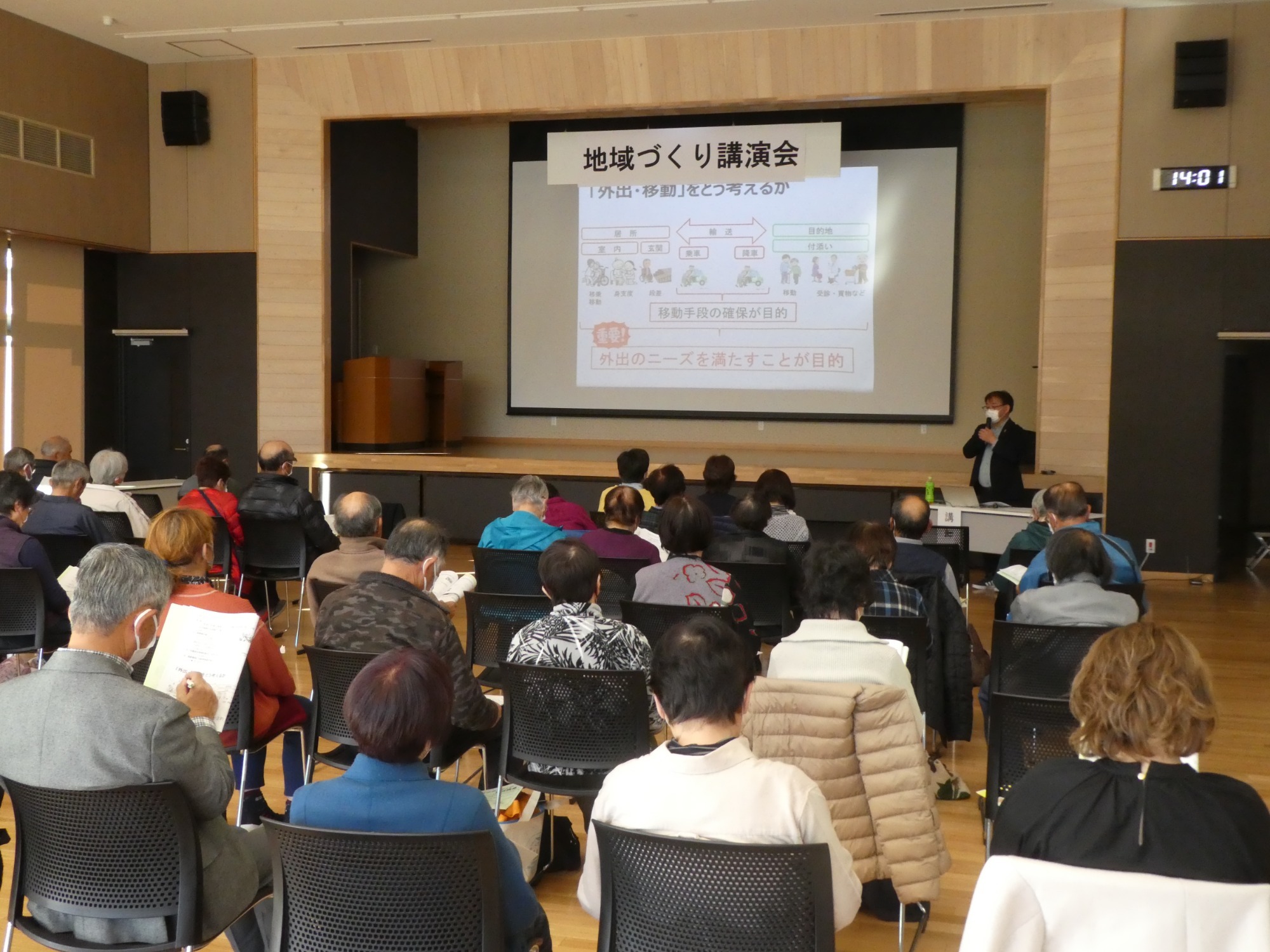 外出機会の減少が、健康・認知症リスクの増加につながることを踏まえ、移動手段の確保が地域の高齢者の生活の質や自立支援に不可欠であること、地域の助け合い活動の広がりと、住民一人ひとりが役割を持つことの重要性などをお話いただきました。多くのご参加ありがとうございました☆彡
