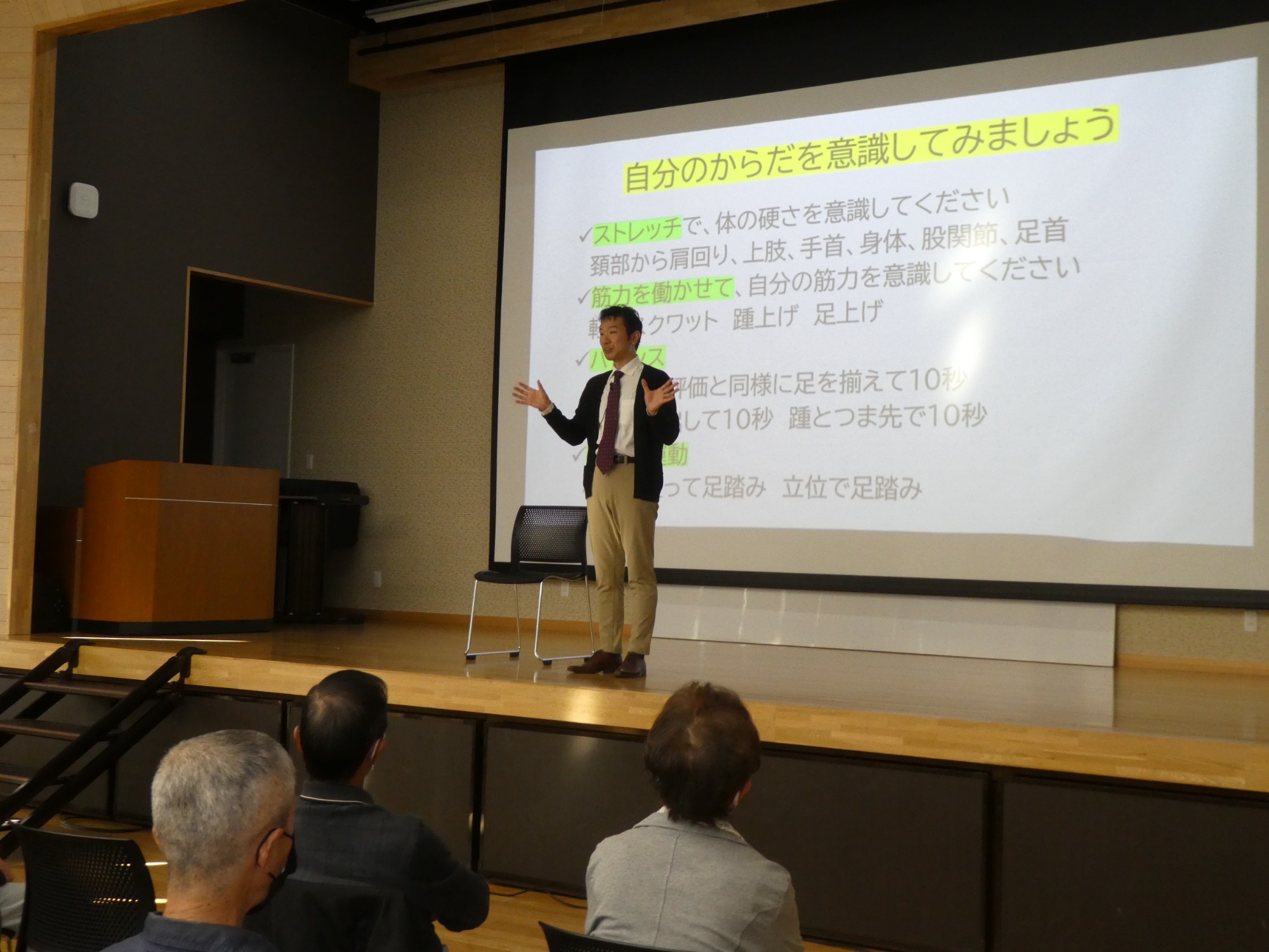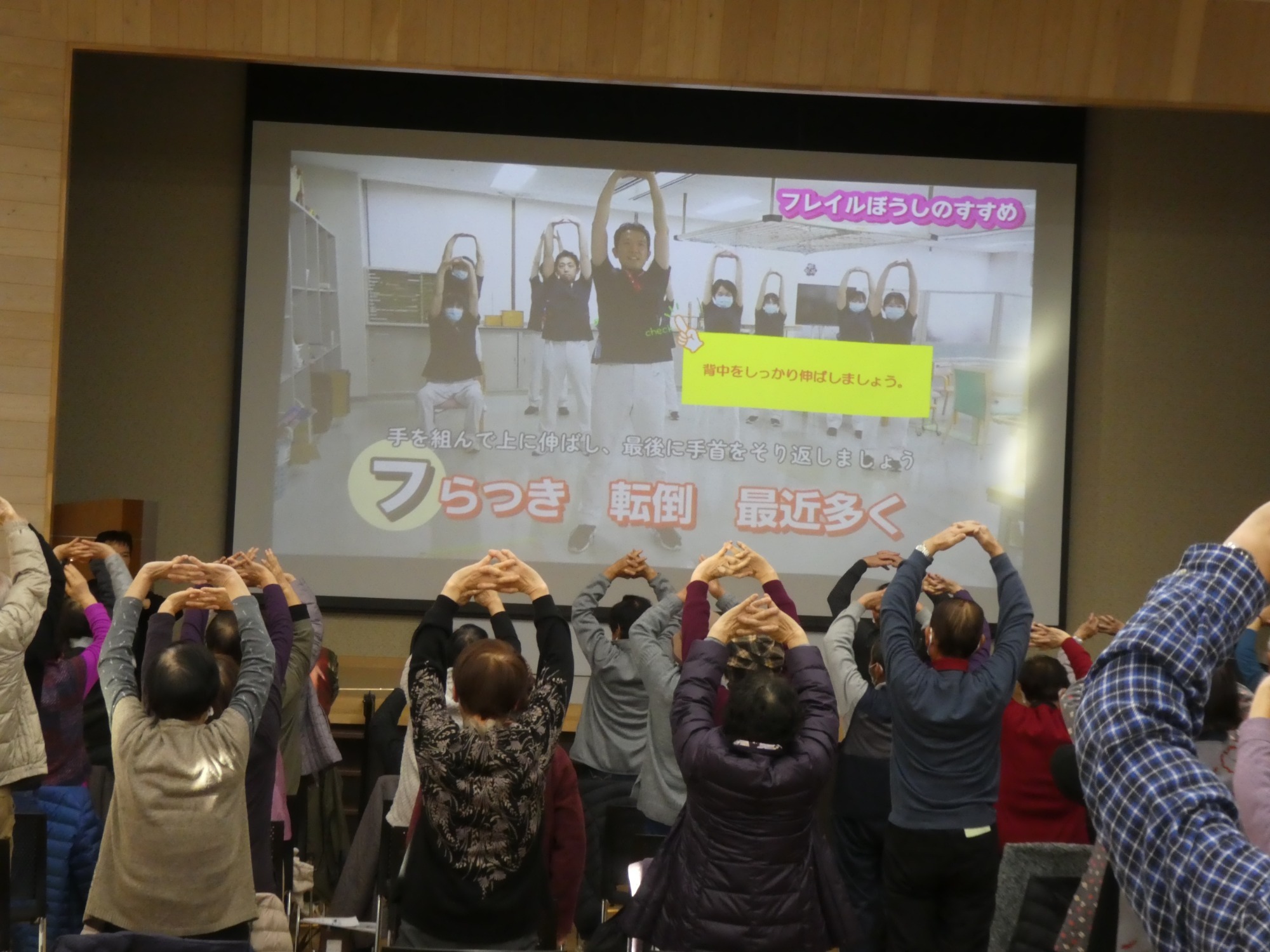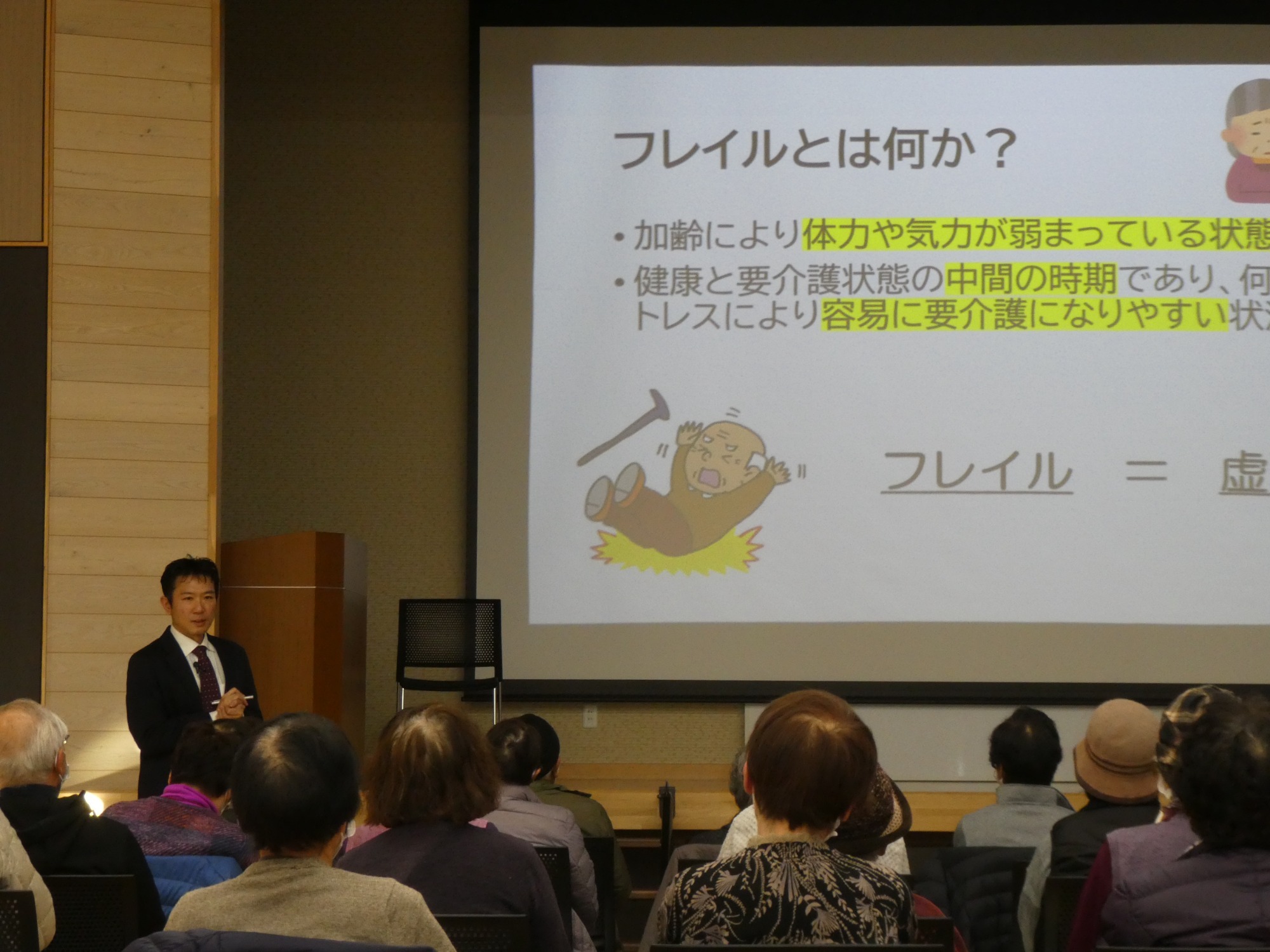 一般法人 脳神経疾患研究所附属 総合南東北病院 リハビリテーション科 船見敬成氏をお迎えし「みんなでのばそう健康寿命」と題しフレイル予防講演会が開催されました。参加されたみなさんより、日々の運動、食事、地域活動や趣味など積極的に行うことが大切だと改めて感じたなどの感想が聞かれました。 みんなで積極的にフレイル予防していきましょう~♬♪♪