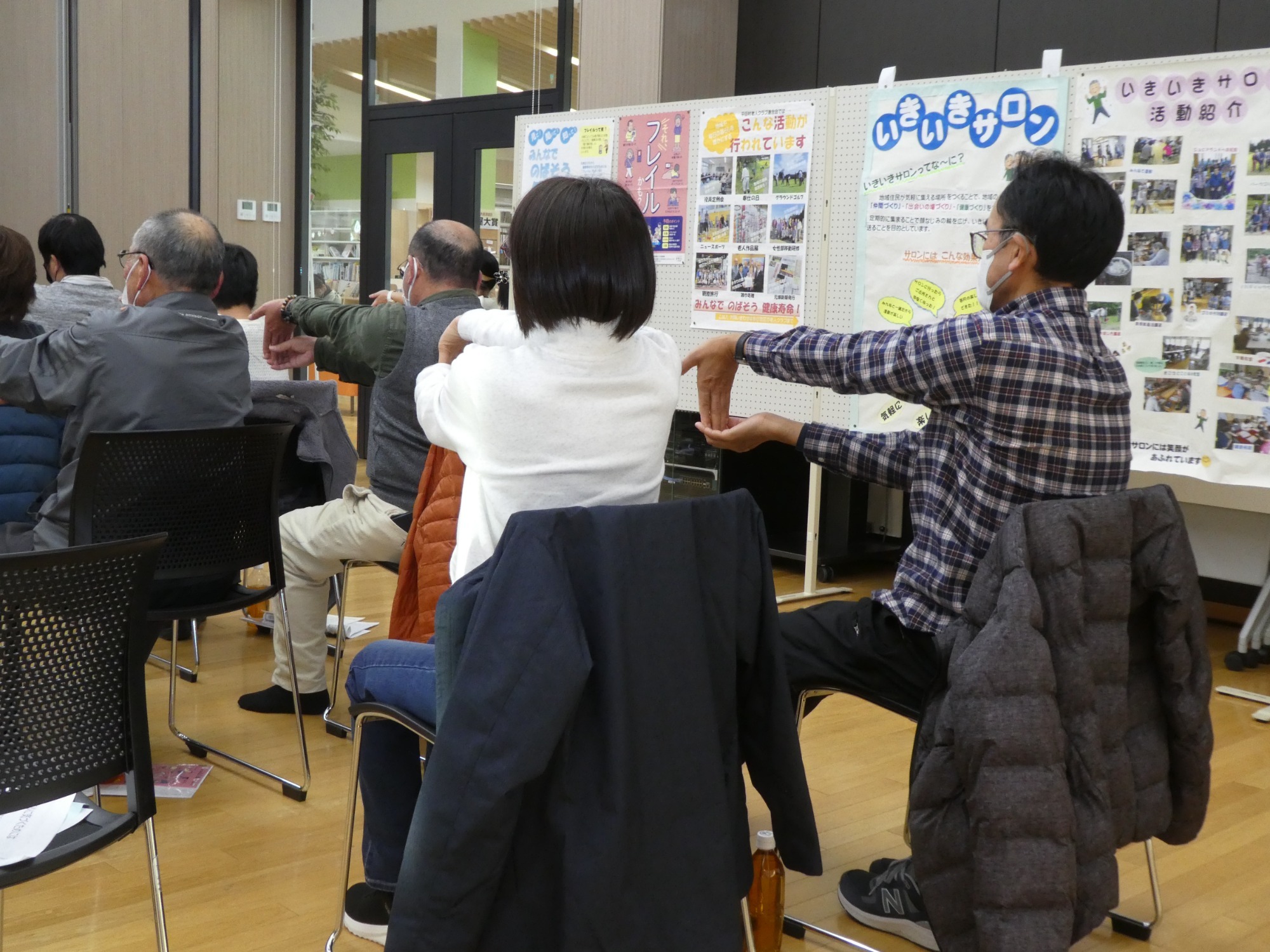 いきいきサロン情報交換会を開催しました。みなさん思いおもい、自分たちのサロンの特徴や自慢・活動状況の紹介をされていました。意見交換の後は『桶飛ばしリレー』や『わっかリレー』などのレクリエーションを通じて交流を深めていただきました。参加者からは、「自分より高齢な方でも元気でいきいきとしている様子を見れて、自分もまだまだ頑張らないと!と感じた。」「サロンは参加しやすい。今度、他のサロンとも交流したい。」などの感想がきかれました(*^-^*)
