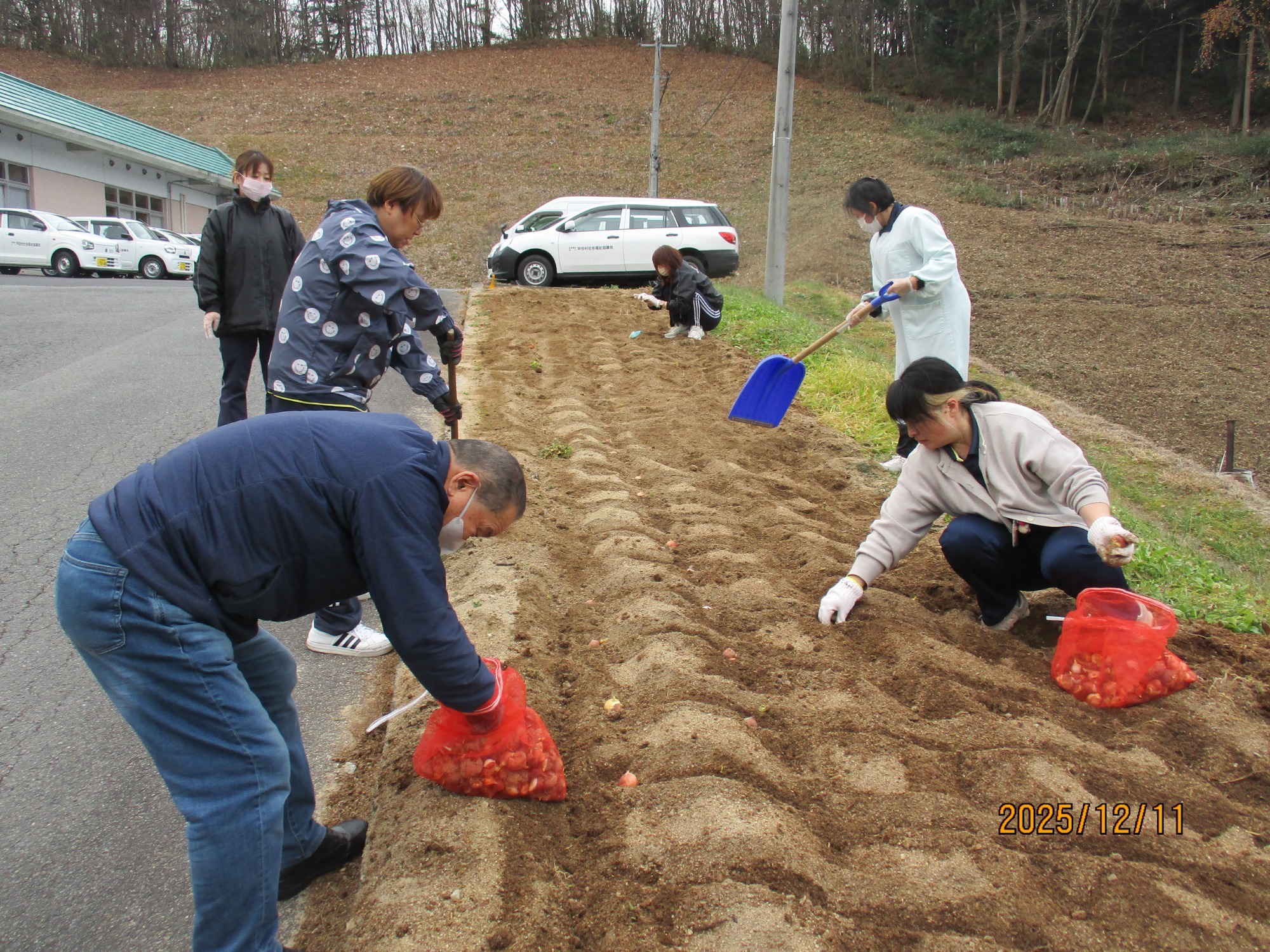 チューリップの球根をみんなで植えました。来春、たくさん咲きますように~🌷🌷🌷